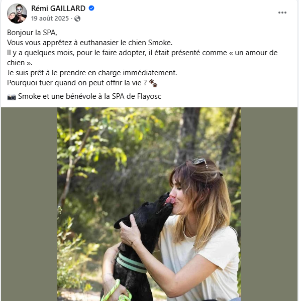 Son soutien a été immédiat et spontané, dès les tout premiers instants de l’affaire Smoke. Sans nous connaître, sans connaître le Smoke, Rémi n’a pas hésité à prendre position et à nous soutenir dans notre combat pour tenter de sauver Smoke et défendre la justice animale. Ce geste fort, empreint de courage et d’humanité, a marqué un tournant majeur dans notre mobilisation.